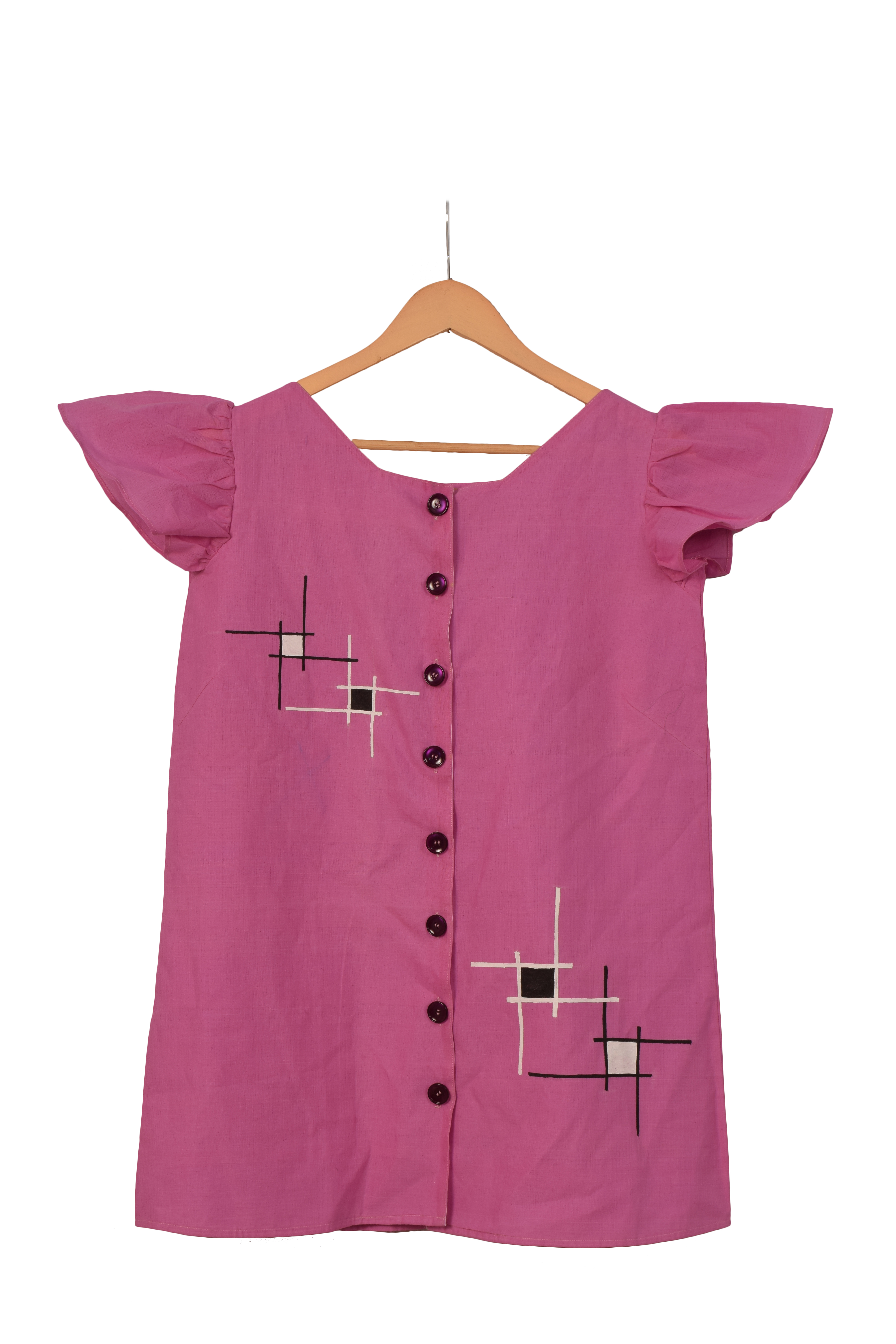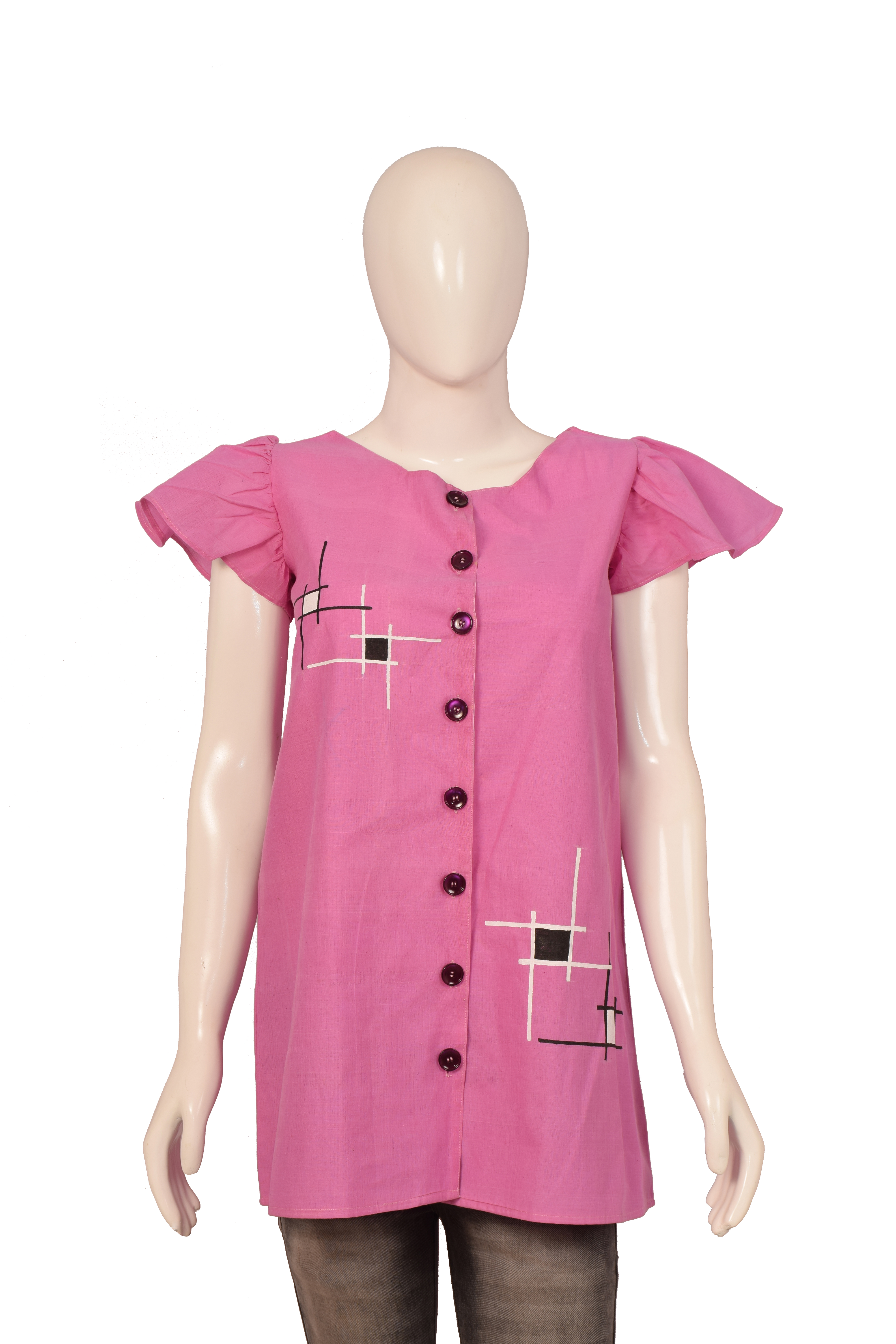 Light Magenta Pochampally Cotton Top with Hand-painted Geometric Design